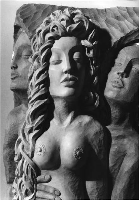 la sirène,matériel bois tilleul-patine