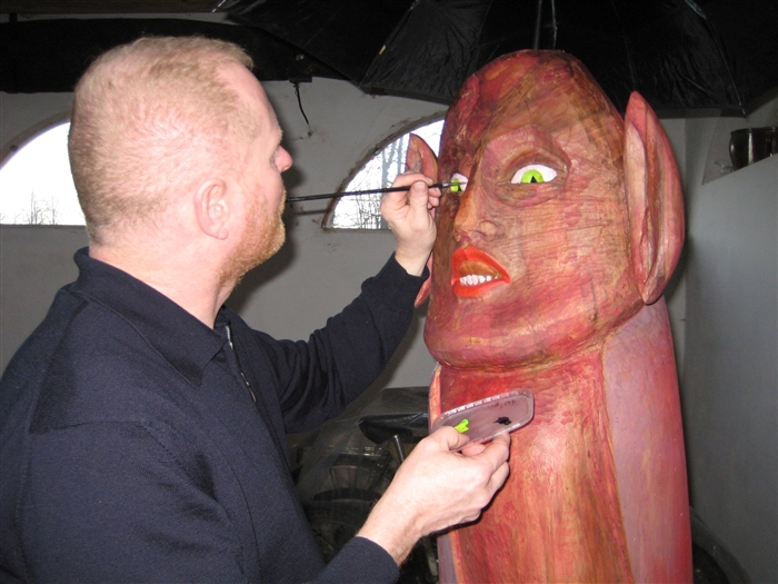 statue-La touriste Brésilienne à Prague,matériel bois tilleul-patine